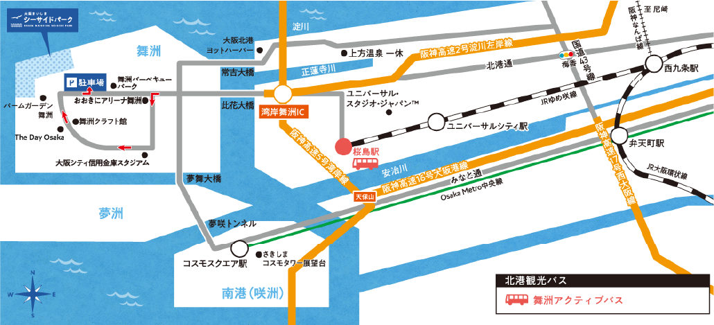 ※舞洲アクティブバスは現金のみの場合があります。ご乗車の際は小銭をご用意ください。